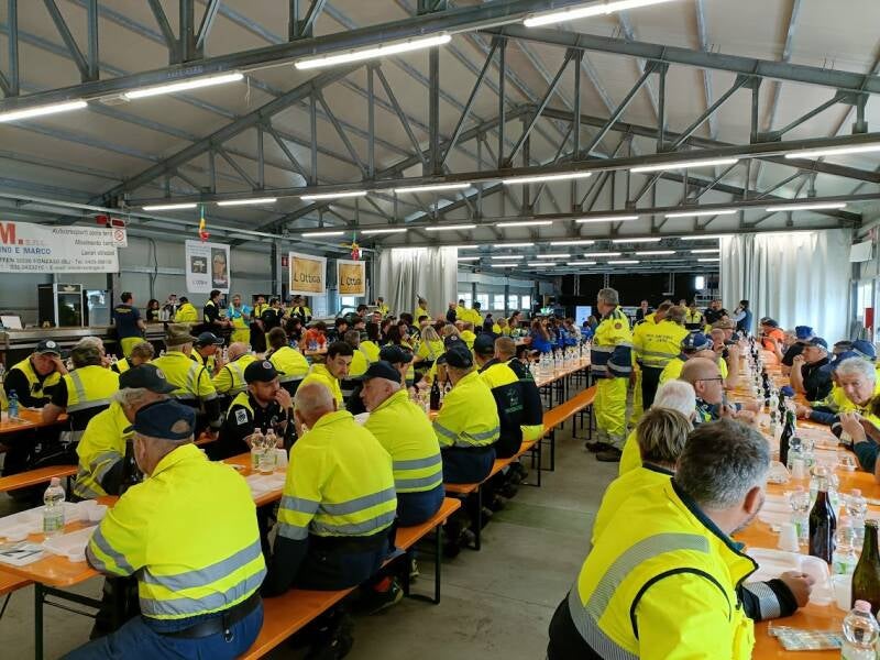 Alle 13 puntualmente tutti i cantieri erano completati e i volontari si sono raccolti nel palazzetto al campo base per il meritato “rancio alpino”, ottimamente preparato dall'immancabile squadra cucine. Per l'occasione, gradito ospite anche il neo Presidente della Provincia Marco Staunovo Polacco, che ha portato il suo saluto e si è congratulato per l'ottima riuscita dell'esercitazione.